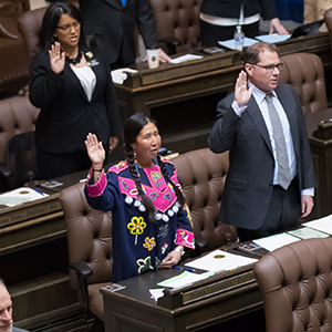 OLYMPIA – Rep. Debra Lekanoff, D-Bow, began her first day in the state legislature by being sworn into office Monday on the floor of the House of Representatives. Rep. Lekanoff is making history as the first Native American woman to become a Washington state Representative.