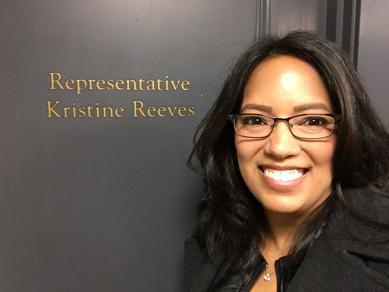 Rep. Reeves in front of her door