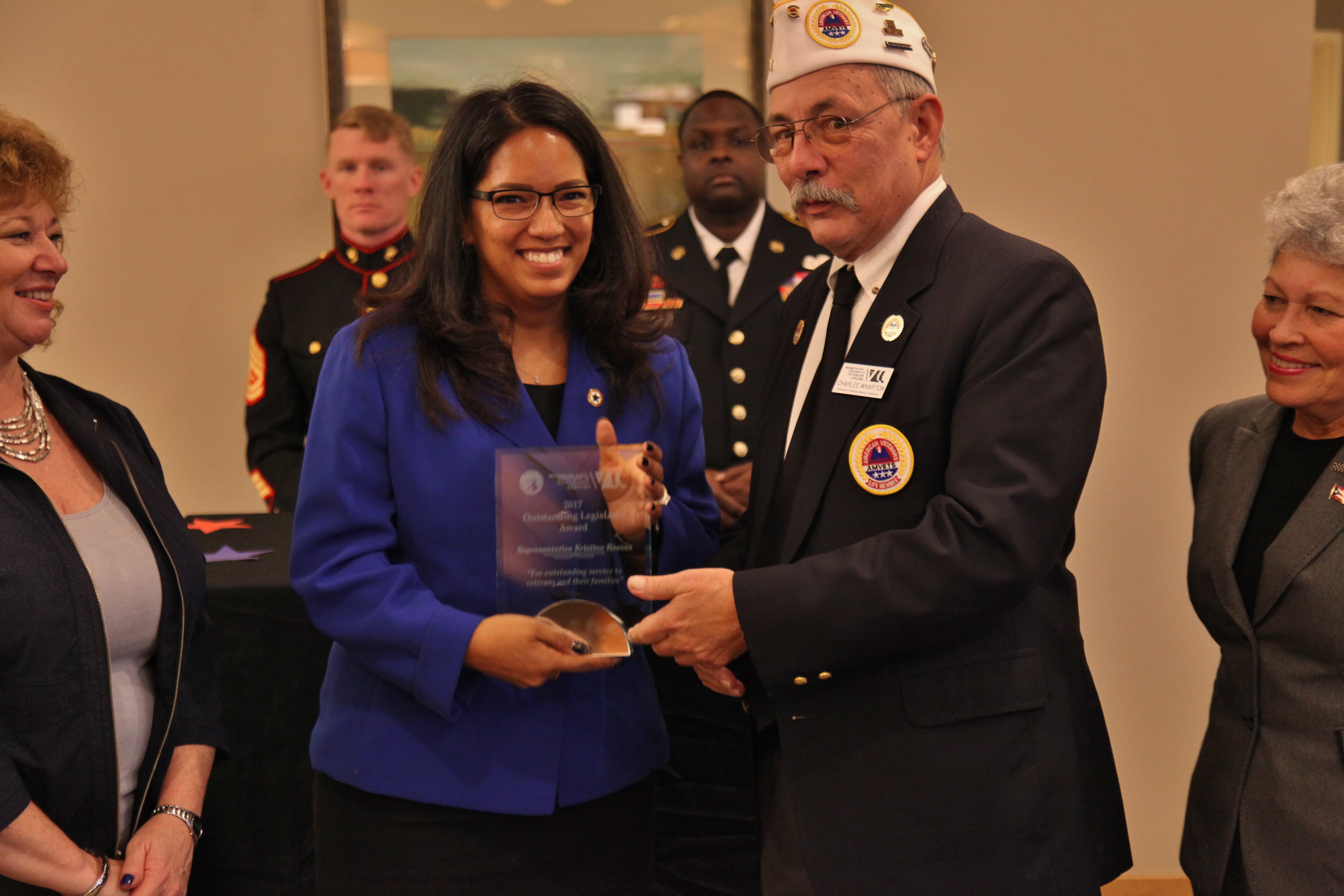 Reeves accepts award from Charles Wharton, chair, Governor’s Veterans’ Affairs Advisory Committee. Photo credit: Gary Lott, Washington Department of Veterans Affairs, used with permission