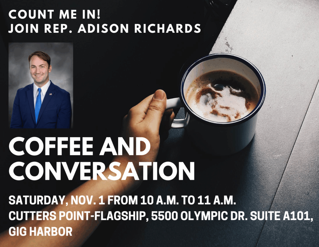 The next coffee chat is 10 a.m. to 11 a.m. this Saturday, Nov. 1, at Cutters Points-Flagship, 5500 Olympic Drive Suite A101, Gig Harbor.
