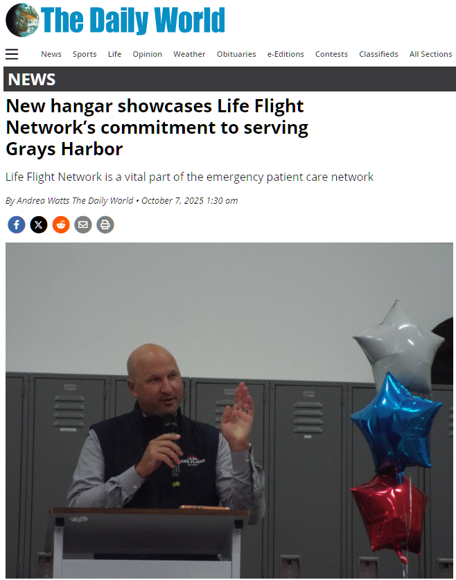 Washington State House Democrats Sites > Steve Tharinger > News > In the News: New hanger for Life Flight in Grays Harbor